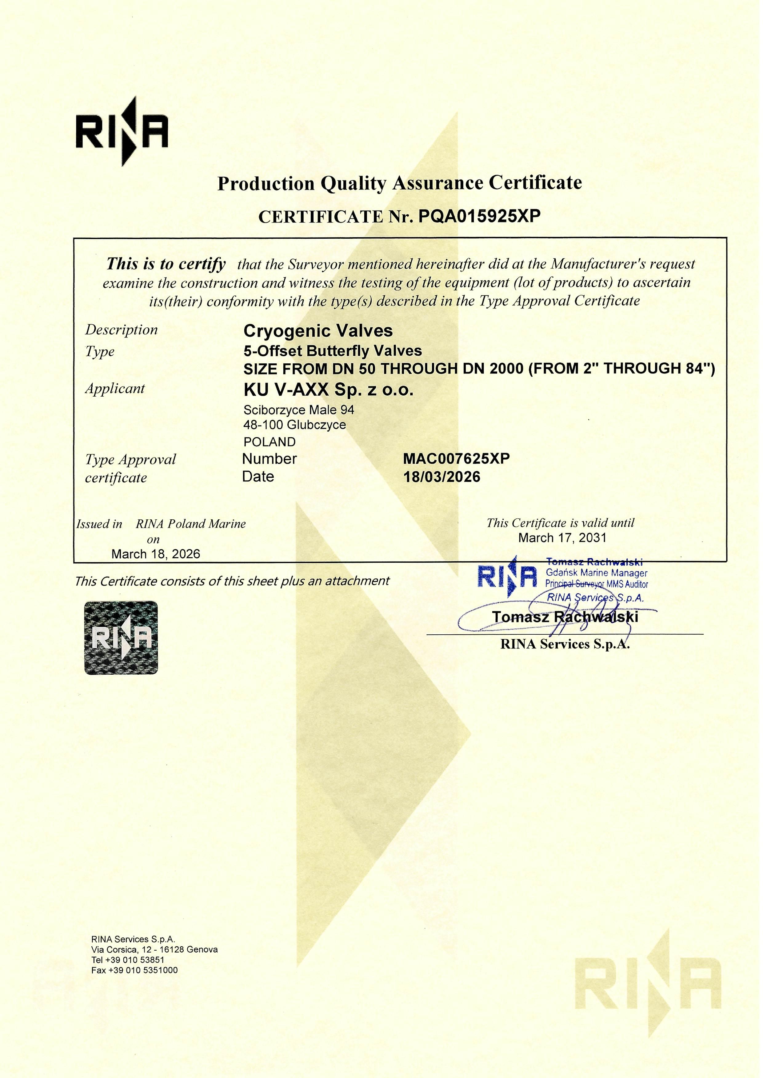 RINA certificate